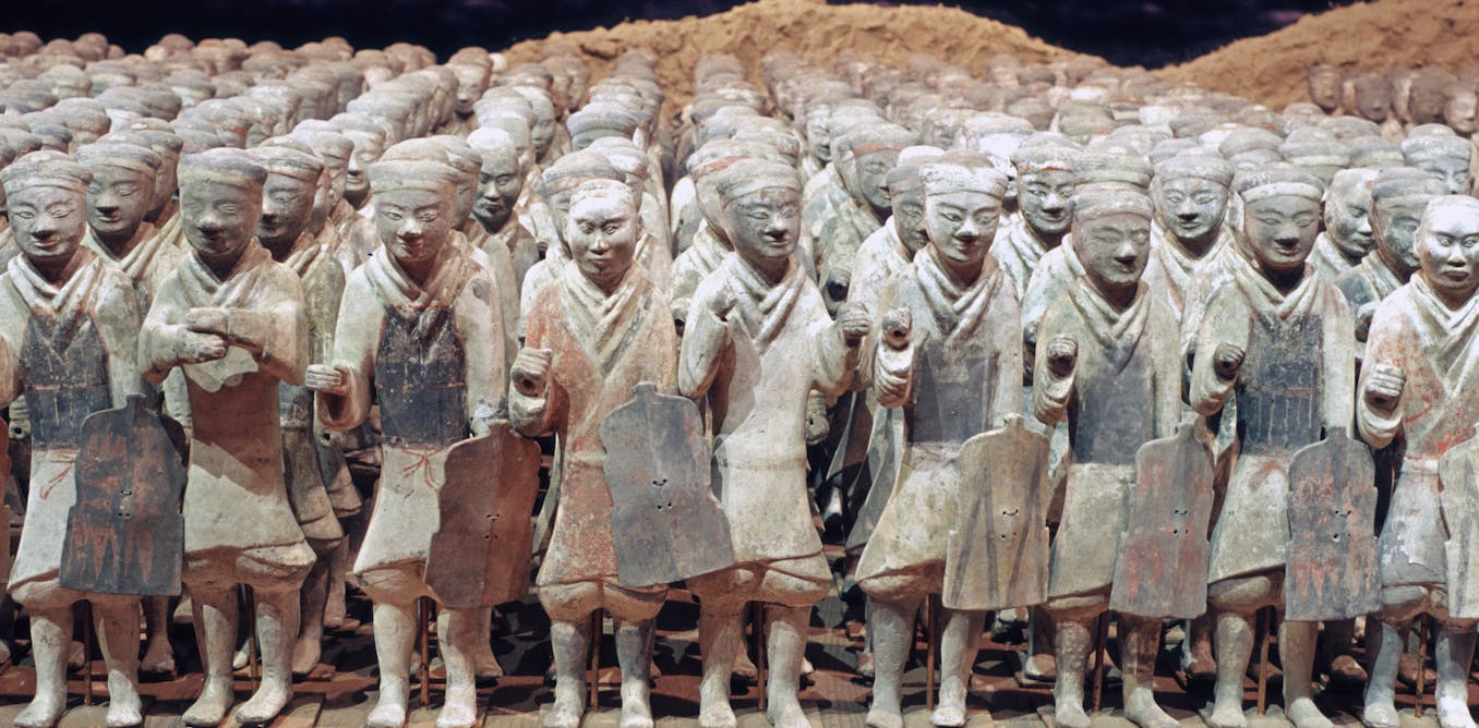 The Han dynasty of China (202BC-AD220) was one of the most developed civilisations of its time, alongside the Roman empire. Its development of cheaper and sharper iron ploughs enabled the gathering of unprecedented harvests of grain.