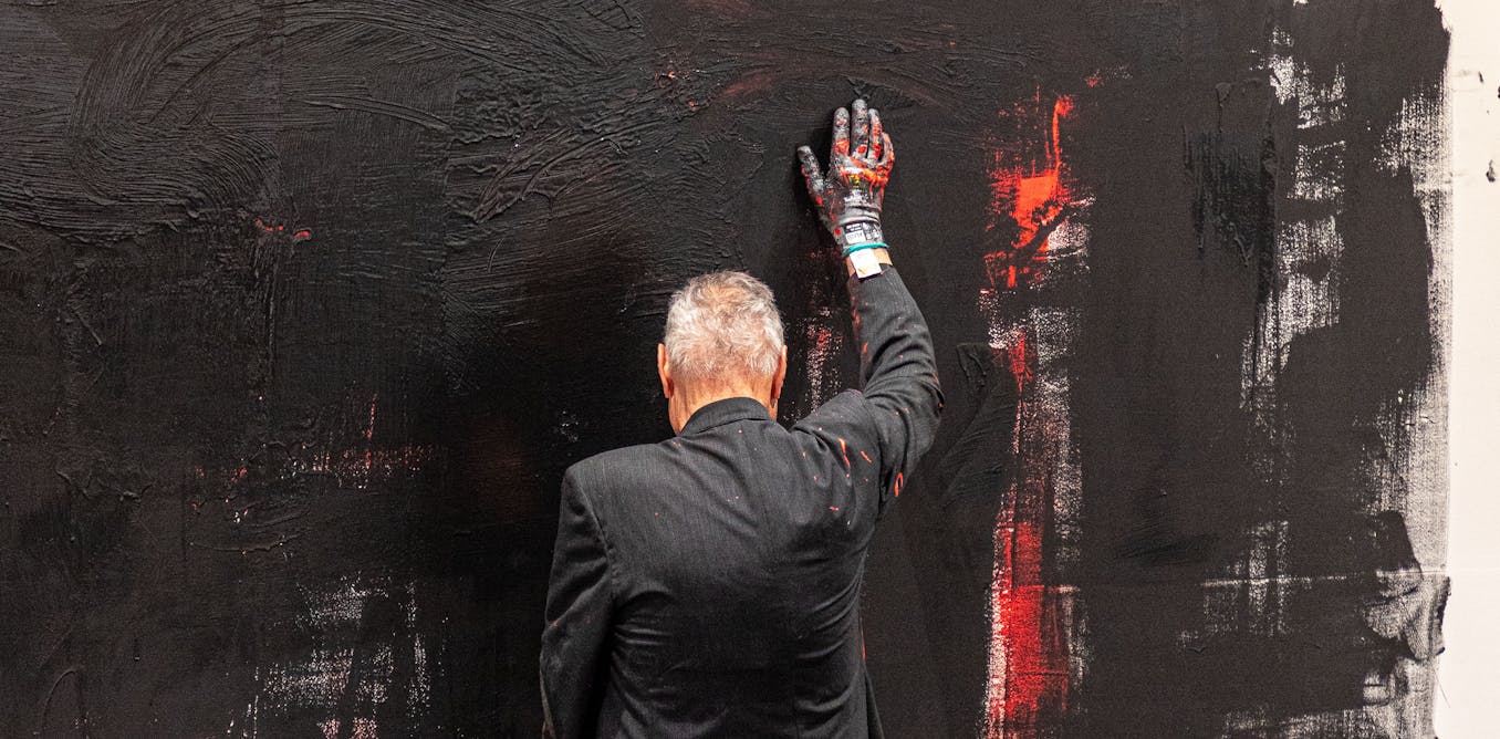 Over the next 12 hours, Parr paints four black squares – at times from perilously high up on a ladder – to be covered with red paint in homage to Abramović’s former Yugoslavian communist background, then covered again with black. The painted squares, complete with drips of red paint running down to the floor, remained after the performance for viewers to ponder their meaning, along with a video of the entire event.